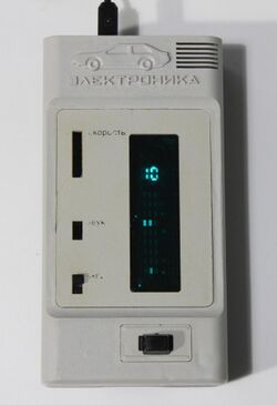 Mattel Electronics Auto Race was released in 1976 by Mattel Electronics as the first handheld electronic game to use only solid-state electronics; it has no mechanical elements except the controls and on/off switch.[1][2] Using hardware designed for calculators and powered by a nine-volt battery, the cars are represented by red LEDs on a playfield which covers only a small portion of the case. The audio consists of beeps. George J. Klose based the game on 1970s racing arcade video games and designed the hardware, with some hardware features added by Mark Lesser who also wrote the 512 bytes of program code.
