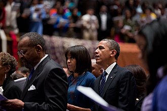 Many people have tried to claim Obama is a Muslim (which, as Colin Powell rightly pointed out, shouldn't be a smear, but, alas, it is in practice), since his father (who was Kenyan) was one before he became an agnostic, or even an atheist.[89] However, Obama is a staunch Christian and often injects Jesus and God into his speeches. Indeed, one of the early controversies was over his, ahem, pastor, Jeremiah Wright. The myth of Obama's connections with Islam originated during his original campaign for the United States Senate. Ironically, there was a Muslim member of Congress elected only two years before Obama became president, and from a Midwestern state no less: Congressman Keith Ellison of Minnesota. The Religious Right happened to target the wrong person.