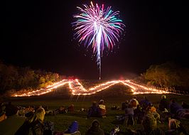 The largest celebration by UW–Platteville students is the twice-annual lighting of the Platte Mound M. The "M" is located on Platte Mound, a nearby large hill east of the city of Platteville.[21]