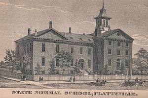 The university grew from the 1959 merger of two schools: Wisconsin State College, Platteville, and Wisconsin Institute of Technology.[5] WSC-Platteville was founded in 1866 as Platteville Normal School, the first teacher preparation school in Wisconsin. It was renamed Platteville State Teachers College in 1926 and Wisconsin State College, Platteville in 1951. The Wisconsin Institute of Technology, founded in 1907 as the Wisconsin Mining Trade School, was founded to train technicians for the numerous mining operations around Platteville. It evolved into the first three-year program for mining engineers in the United States. It changed its name to the Wisconsin Institute of Technology in 1939. The merged school took the name Wisconsin State College and Institute of Technology. In 1966, along with Wisconsin's other state colleges, it was granted university status as Wisconsin State University-Platteville. It took its current name after the Wisconsin State University system merged with the University of Wisconsin in 1971.[5]