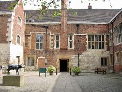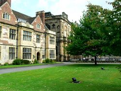 John Bowes Morrell was the driving force behind the university's establishment.[14] York accepted its first students the year of Morrell's death, 1963, opening with 216 undergraduates, 14 postgraduates, and 28 academic and administrative staff.[18] The university started with six departments: Economics, Education, English, History, Mathematics, Politics.[15] At the time, the university consisted of three buildings, principally the historic King's Manor in the city centre and Heslington Hall, which has Tudor foundations and is in the village of Heslington on the edge of York. A year later, work began on purpose-built structures on the Heslington Campus, which now forms the main part of the university.