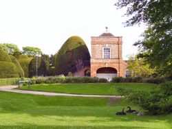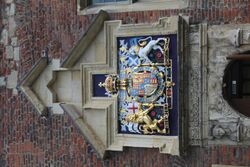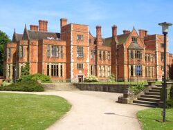 Heslington Hall is a Grade II* listed rebuilt manor house consisting of a central nine-bay two-storey block with attics and two two-storey wings at each end. It is built of brick in English bond with sandstone ashlar dressings. The original Manor house was constructed in 1568 for Sir Thomas Eynns, the Secretary and Keeper of the Seal to the Council of the North; and his wife Elizabeth.[47]