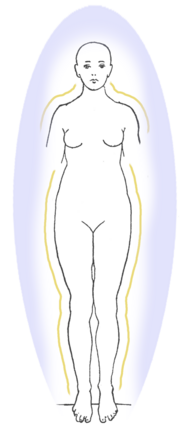 In yoga participants attempt to focus on, or enhance their "auric energy shield".[23] The concept of auric energy is spiritual and is concerned with metaphysics. Some people think that the aura carries a person's soul after death.[24]