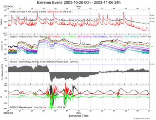 Some spacecraft failures can be directly attributed to space weather; many more are thought to have a space weather component. For example, 46 of the 70 failures reported in 2003 occurred during the October 2003 geomagnetic storm. The two most common adverse space weather effects on spacecraft are radiation damage and spacecraft charging.