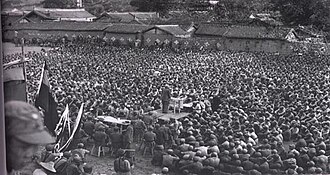 Mao Zedong had always taken a harsh stance against the KMT and Chiang, and his views were validated after the massacre and betrayal.[17] His rise to prominence was aided significantly by the KMT, which eliminated many of his competitors during their purges and then killed even more in the failed communist counterattack at Nanchang.[18] Mao then took control of communist forces and led the retreat from KMT-occupied China after another failed counterattack in September.[19] For this, the Soviets denounced him as a coward.