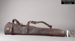 A scabbard is a sheath for holding a sword, dagger, knife, or similar edged weapons. As well, rifles and other long guns may be stored in a scabbard by horse riders for transportation. Military cavalry and cowboys had scabbards for their saddle ring lever-action carbines and rifles on their horses for transportation and protection. Scabbards have been made of many materials over the millennia, including leather, wood, and metal such as brass or steel.[1]
