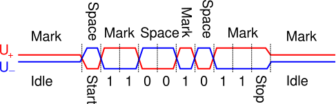 | Signal | Mark (logic 1) | Space (logic 0) |