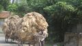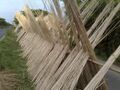 Jute fibre is made from the bark tissue of C. olitorius and C. capsularis, especially in South Asian countries, though fibre made from C. olitorius is considered to be of lesser quality. Finished fibres appear golden and silky with a length of up to 3 metres and with a diameter of 2.4 µm.[20] The plant stalk is cut and then processed by pulling up, rippling, partial retting, breaking, spinning and combing to obtain fine fibres that are well separated from unwanted woody material. Afterwards the fibres are cured and dried.