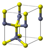 Among the compounds that can take the wurtzite structure are wurtzite itself (ZnS with up to 8% iron instead of zinc), silver iodide (AgI), zinc oxide (ZnO), cadmium sulfide (CdS), cadmium selenide (CdSe), silicon carbide (α-SiC), gallium nitride (GaN), aluminium nitride (AlN), boron nitride (w-BN) and other semiconductors.[4] In most of these compounds, wurtzite is not the favored form of the bulk crystal, but the structure can be favored in some nanocrystal forms of the material.