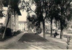 In 1896, the Boyle Heights building was destroyed by fire. The college temporarily relocated to the old St. Vincent's College campus on Hill Street before a new site was selected in Highland Park in 1898.[4] Eventually, the college erected three main buildings: the Academy Building, the Stimson Library, and the Hall of Arts and Letters (the Hall still stands today, converted to apartments).[6] The Highland Park site was also bisected by the tracks of the Santa Fe Railroad,[6] and was the site of two presidential visits, first by William Howard Taft in 1909 and subsequently by Theodore Roosevelt in 1911.[6]