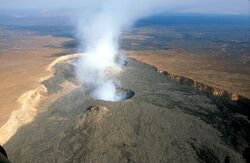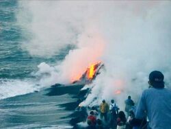 Eruption of Kīlauea in 1954Erta Ale.The erupting lava from Piton de la Fournaise met the water of the Indian Ocean during the August 2004 eruption.On the path to the summit of Mount Warning.Skjaldbreiður as seen from Þingvellir