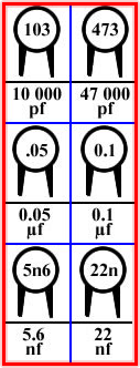 Capacitance, tolerance and date of manufacture can be identified with a short code according to IEC/EN 60062. Examples of short-marking of the rated capacitance (microfarads):