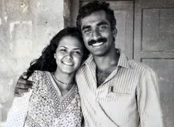 He met Vijaya Kumari, known as Vijji, in 1984 after a yoga class in Mysuru. Vijaya Kumari had previously been through a difficult marriage and divorce.[21] After a brief romance, they made an impromptu decision to get married during a trip to Irupu Falls on Maha Shivaratri. Kumari and Vasudev’s mother developed a close relationship, while Kumari’s parents respected Vasudev because her father benefited from Vasudev’s yoga classes after suffering a paralytic stroke.[22]