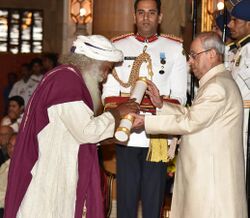 Vasudev received the Padma Vibhushan, the second-highest civilian award from the Government of India in 2017 in recognition of his contribution to the field of spirituality.[48][49] He stood 92nd in The Indian Express' list of 100 most powerful Indians, in 2012 and stood 40th in India Today's list of 50 most powerful Indians, in 2019.[50][51]