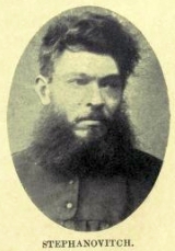 In Ukraine, the ranks of the buntars swelled with a number of "illegals", who remained out of the reach of the Russian authorities. The buntars began agitating in Korsun, where they planned to incite the local peasants to expropriate the land they worked and to launch an armed uprising against the Russian authorities, gaining a foothold there by the spring of 1876.[32] But their plans did not materialize and after one of their members turned informant they were forced to abandon Korsun and scatter.[33] Some of these buntars were able to gain a foothold in Chyhyryn, where the lower-class peasants and their landlords had come into conflict over land rights.[34] Claiming to act on behalf of Alexander II, the buntars led by Yakov Stefanovich intervened on the side of the peasant dusheviks in order to redistribute land to them.[35] Under the leadership of Stefanovich, self-styled as "Commissar Dmytro Naido", they formed peasant combat druzhinas with elected atamans and soviets.[36] The organisation grew to over one thousand members and existed for nine months until its discovery by the police in September 1877, after which its leading members were arrested.[37]