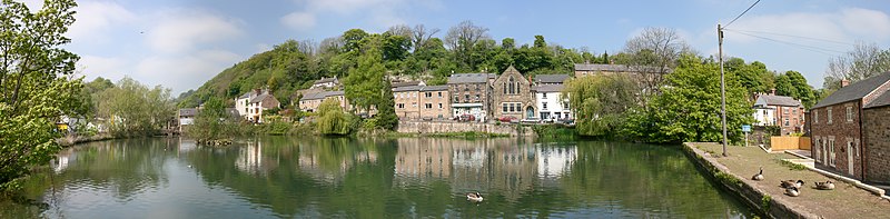 Cromford (/ˈkrɒmfərd/) is a village and civil parish in Derbyshire, England, in the valley of the River Derwent between Wirksworth and Matlock. It is 17 miles (27 km) north of Derby, 2 miles (3.2 km) south of Matlock and 1 mile (1.6 km) south of Matlock Bath. It is first mentioned in the 11th-century Domesday Book as Crumforde, a berewick (supporting farm) of Wirksworth, and this remained the case throughout the Middle Ages. The population at the 2011 Census was 1,433.[1] It is principally known for its historical connection with Richard Arkwright and the nearby Cromford Mill, which he built outside the village in 1771. Cromford is in the Derwent Valley Mills World Heritage Site.