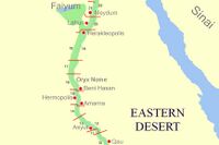 After the unification of Egypt, the provincial capital of the 16th nome emerged as an important center of trade. It was opposite a trade route to the Red Sea along which the Levantine traders carrying their goods from Sinai and Canaan travelled.[5]
