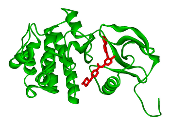 The classic example of targeted development is imatinib mesylate (Gleevec), a small molecule which inhibits a signaling molecule kinase. The genetic abnormality causing chronic myelogenous leukemia (CML) has been known for a long time to be a chromosomal translocation creating an abnormal fusion protein, kinase BCR-ABL, which signals aberrantly, leading to uncontrolled proliferation of the leukemia cells. Imatinib precisely inhibits this kinase. Unlike so many other anti-cancer agents, this pharmaceutical was no accident. Brian Druker, working in Oregon Health & Science University, had extensively researched the abnormal enzyme kinase in CML. He reasoned that precisely inhibiting this kinase with a drug would control the disease and have little effect on normal cells. Druker collaborated with Novartis chemist Nicholas Lydon, who developed several candidate inhibitors. From these, imatinib was found to have the most promise in laboratory experiments. First Druker and then other groups worldwide demonstrated that when this small molecule is used to treat patients with chronic-phase CML, 90% achieve complete haematological remission. It is hoped that molecular targeting of similar defects in other cancers will have the same effect.