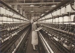 From Handwiki Spinning is a twisting technique to form yarn from fibers. The fiber intended is drawn out, twisted, and wound onto a bobbin. A few popular fibers that are spun into yarn other than cotton, which is the most popular, are viscose (the most common form of rayon), animal fibers such as wool, and synthetic polyester.[1] Originally done by hand using a spindle whorl, starting in the 500s AD the spinning wheel became the predominant spinning tool across Asia and Europe. The spinning jenny and spinning mule, invented in the late 1700s, made mechanical spinning far more efficient than spinning by hand, and especially made cotton manufacturing one of the most important industries of the Industrial Revolution.