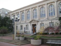 In 1839, the Missouri Legislature passed the Geyer Act to establish funds for a state university.[27] It was the first public university west of the Mississippi River.[28] To secure the university, the citizens of Columbia and Boone County pledged $117,921 in cash and land to beat out five other central Missouri counties for the location of the state university.[28] The land on which the university was constructed was just south of Columbia's downtown and owned by James S. Rollins who was later called the "Father of the University."[29] As the first public university in the Louisiana Purchase, the school was shaped by Thomas Jefferson's ideas about public education.[30] The school initially admitted only white male students.[31]