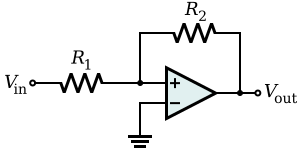 Substituting this into the gain equation and solving for [math]\displaystyle{ V_\text{out} }[/math]: