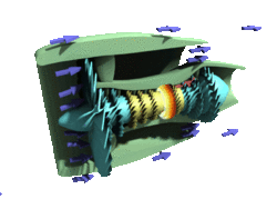 From Handwiki An airbreathing jet engine (or ducted jet engine) is a jet engine in which the exhaust gas which supplies jet propulsion is atmospheric air, which is taken in, compressed, heated, and expanded back to atmospheric pressure through a propelling nozzle. Compression may be provided by a gas turbine, as in the original turbojet and newer turbofan, or arise solely from the ram pressure of the vehicle's velocity, as with the ramjet and pulsejet.