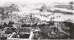 The allied march on August 4—about 120 kilometers from Tianjin to Beijing—was not particularly harsh, despite approximately 70,000 Imperial troops and anywhere from 50,000 to 100,000 Boxers along the way. They only encountered minor resistance and a battle was engaged in Yangcun, about 30 kilometers outside Tianjin, where the United States’ 14th Infantry Regiment and British troops led the assault. The weather was a major obstacle, as it was extremely humid, with temperatures sometimes reaching 110 degrees Fahrenheit (43 Celsius).