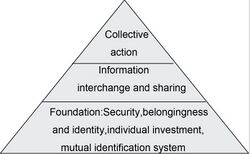 Moments mainly consolidates strong ties and is supplemented with weak ties, and it functions in three hierarchies of a pyramid structure, from bottom to top.[6]