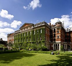 London is home to five major medical schools – Barts and The London School of Medicine and Dentistry (part of Queen Mary), King's College London School of Medicine (the largest medical school in Europe), Imperial College School of Medicine, UCL Medical School and St George's, University of London – and has many affiliated teaching hospitals. It is also a major centre for biomedical research, and three of the UK's eight academic health science centres are based in the city – Imperial College Healthcare, King's Health Partners and UCL Partners (the largest such centre in Europe).[342] Additionally, many biomedical and biotechnology spin out companies from these research institutions are based around the city, most prominently in White City. Founded by Florence Nightingale at St Thomas' Hospital in 1860, the first nursing school is now part of King's College London.[343] It was at King's in 1952 where a team led by Rosalind Franklin captured Photo 51, the critical evidence in identifying the structure of DNA.[344] There are a number of business schools in London, including the London School of Business and Finance, Cass Business School (part of City University London), Hult International Business School, ESCP Europe, European Business School London, Imperial College Business School, the London Business School and the UCL School of Management.