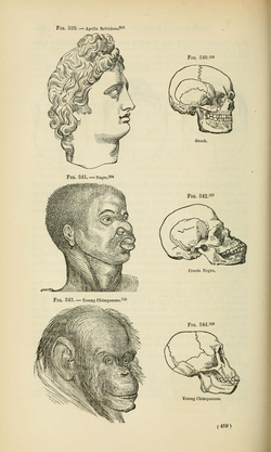 Racialists quote forensic anthropologists who are said to be able to estimate ancestry of skeletal remains by continent ("race") with an accuracy of up to 90%. For example, a 1986 textbook by forensic anthropologists claimed that race should be determinable from skull morphology alone with an accuracy of 85-90%.[122]:296[123] The revised version of the textbook did not make such a claim however, and cited Hefner (2009)[124] that "'the lack of a methodological approach' used in these methods, and the fact that there are no error rates associated with ancestry prediction using them. He suggested that they have not been investigated with appropriate scientific and legal considerations in mind, and aspects such as inter-observer repeatability have hardly been considered. … forensic anthropologists claim that they can accurately asses ancestry using these [skeletal] traits, and the actual frequencies of these traits are, in fact, much lower than assumed. … [Ousley (2006)] suggested that analysts make a diagnosis of ancestry based on an overall impression of a skull, and then choose the traits post-hoc to support their assumption as a type of confirmation bias."[125]:203