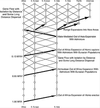 The geographical pattern to human interpopulation variation, matches an almost continuous gradient/isolation-by-distance model[135][136][137][138][139][40] However much of this discontinuity is found within continents, not between them[49][140][141] — which again renders the ideas of (e.g.) "white" and "black" as irrelevant.
