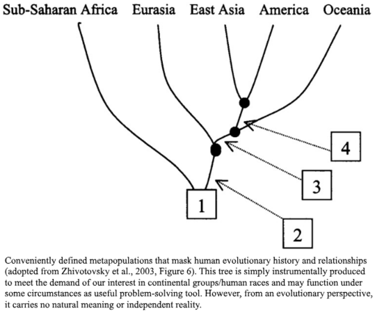 “”[I]f one wants to measure the meaningfulness of differences between groups with different geographic ancestries, one needs to use a “proportion of variation” approach. This approach compares genetic variation among individuals within groups to the genetic variation between these groups. Ironically, Edwards’s (2003) reported findings confirm Lewontin’s (1972).