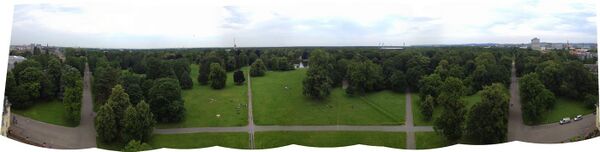 The city was planned with the palace tower (Schloss) at the center and 32 streets radiating out from it like the spokes of a wheel, or the ribs of a folding fan, so that one nickname for Karlsruhe in German is the "fan city" (Fächerstadt). Almost all of these streets survive to this day. Because of this city layout, in metric geometry, Karlsruhe metric refers to a measure of distance that assumes travel is only possible along radial streets and along circular avenues around the centre.[5]