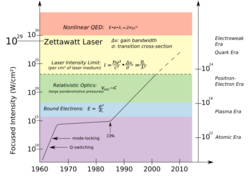 • Powerful laser is 'brightest light in the universe'—The world's most powerful laser as of 2008 might create supernova-like shock waves and possibly even antimatter