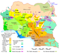 Table of demographic estimates in the same color code as the maps (est. 400 million speakers as of 2007)