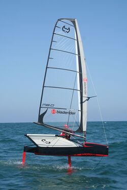 From Handwiki A sailing hydrofoil, hydrofoil sailboat, or hydrosail is a sailboat with wing-like foils mounted under the hull. As the craft increases its speed the hydrofoils lift the hull up and out of the water, greatly reducing wetted area, resulting in decreased drag and increased speed. A sailing hydrofoil can achieve speeds exceeding double and in some cases triple the wind speed.