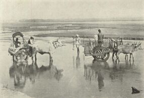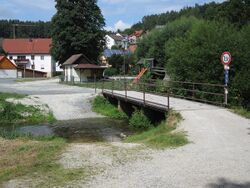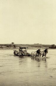A ford is a shallow place with good footing where a river or stream may be crossed by wading, or inside a vehicle getting its wheels wet.[1] A ford may occur naturally or be constructed. Fords may be impassable during high water. A low-water crossing is a low bridge that allows crossing over a river or stream when water is low but may be treated as a ford when the river is high and water covers the crossing.