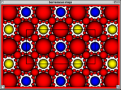 Geometry lets us visualize what the inside of a knot or link complement looks like by imagining light rays as traveling along the geodesics of the geometry. An example is provided by the picture of the complement of the Borromean rings. The inhabitant of this link complement is viewing the space from near the red component. The balls in the picture are views of horoball neighborhoods of the link. By thickening the link in a standard way, the horoball neighborhoods of the link components are obtained. Even though the boundary of a neighborhood is a torus, when viewed from inside the link complement, it looks like a sphere. Each link component shows up as infinitely many spheres (of one color) as there are infinitely many light rays from the observer to the link component. The fundamental parallelogram (which is indicated in the picture), tiles both vertically and horizontally and shows how to extend the pattern of spheres infinitely.