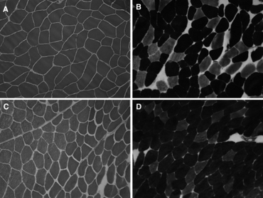 | a-d)Muscle fiber size variability,as well as type 2 fibers predominance | |