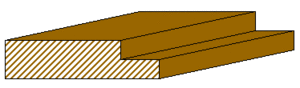 An example of the use of a rabbet is in a glazing bar where it makes provision for the insertion of the pane of glass and putty. It may also accommodate the edge of the back panel of a cabinet. It is also used in door and casement window jambs, and for shiplap planking. A rabbet can be used to form a joint with another piece of wood (often containing a dado).