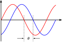 In physics and mathematics, the phase (symbol φ or ϕ) of a wave or other periodic function [math]\displaystyle{ F }[/math] of some real variable [math]\displaystyle{ t }[/math] (such as time) is an angle-like quantity representing the fraction of the cycle covered up to [math]\displaystyle{ t }[/math]. It is expressed in such a scale that it varies by one full turn as the variable [math]\displaystyle{ t }[/math] goes through each period (and [math]\displaystyle{ F(t) }[/math] goes through each complete cycle). It may be measured in any angular unit such as degrees or radians, thus increasing by 360° or [math]\displaystyle{ 2\pi }[/math] as the variable [math]\displaystyle{ t }[/math] completes a full period.[1]