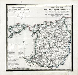 From 1845 to 1876, the Baltic governorates of Estonia, Livonia, and Courland — an area roughly corresponding to the historical medieval Livonia — were administratively subordinated to a common Governor-General. Amongst the holders of this post were Count Alexander Arkadyevich Suvorov[13] and Count Pyotr Andreyevich Shuvalov.