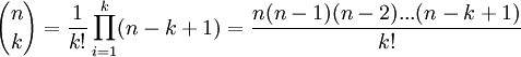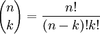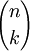 is the binomial coefficient and pronounced "n choose k". It is derived from combinatorics and equal to: