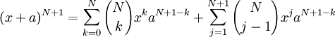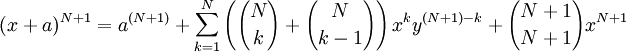 The binomial theorem for integer n can easily be proved using proof by induction.[3] Supposing the theorem is true for n=N. Then: