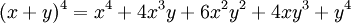 As an example, consider expanding (x+y)4. It would take a while doing it by hand. Using the binomial theorem, we quickly derive: