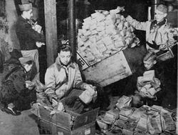 In 1950, the Wisconsin Alumni Research Foundation patented warfarin, a new chemical compound which had been in development since the 1930s.[1] Chicago businessman Lee Ratner secured a non-exclusive licensing agreement for the product, which had been approved for use as a rodenticide.[2][3] He then founded the d-CON Company to sell the new product, purchasing an initial supply from another company already distributing the compound.[4] (The name "d-CON" being a reference to "decontaminate".)[5] Within a short period of time, the product "revolutionized the art of rodent control".[1] Previously, farmers had to shoot rats one at a time or use high doses of toxic chemicals.[1][6] In contrast, warfarin posed minimal risk to other animals as cumulative doses were required to achieve toxicosis, and did not cause bait shyness.[1] d-CON was originally sold in 4-ounce packages of green powder for $2.98. When mixed with grain or ground meat the product produced six pounds of bait – enough to cover an average sized farm.[3][5]
