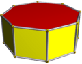 A regular octagon has Schläfli symbol {8} [1] and can also be constructed as a quasiregular truncated square, t{4}, which alternates two types of edges. A truncated octagon, t{8} is a hexadecagon, {16}. A 3D analog of the octagon can be the rhombicuboctahedron with the triangular faces on it like the replaced edges, if one considers the octagon to be a truncated square.