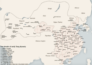 | Tang, Liao | Circuit (道, Script error: The function "transl" does not exist.) | Prefecture (smaller: 州; larger: 府, Script error: The function "transl" does not exist.) |