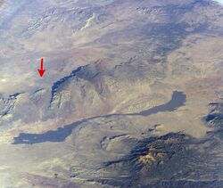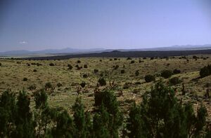 The volcanic field is associated with the Rio Grande Rift, a region of the Earth's crust that is being slowly pulled apart. This produces faulting that provides paths for magma to reach the Earth's surface from its upper mantle.[10] The lavas erupted were mildly alkaline in composition, similar to the nearby Jornada del Muerto, Hillsboro, and Black Mesa ( [ ⚑ ] 33°44′46″N 106°52′23″W / 33.746°N 106.873°W) flows.[11]
