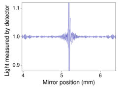 Fourier transform infrared (FTIR) spectroscopy is a measurement technique that allows one to record infrared spectra. Infrared light is guided through an interferometer and then through the sample (or vice versa). A moving mirror inside the apparatus alters the distribution of infrared light that passes through the interferometer. The signal directly recorded, called an "interferogram", represents light output as a function of mirror position. A data-processing technique called Fourier transform turns this raw data into the desired result (the sample's spectrum): light output as a function of infrared wavelength (or equivalently, wavenumber). As described above, the sample's spectrum is always compared to a reference.